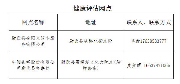 根据《河南省电动自行车锂离子电池健康评估及报废回收专项行动方案》的要求,为贯彻落实电动自行车安全隐患全链条整治工作,加快推动电动自行车锂离子电池健康评估及报废回收专项行动,切实保障人民群众生命财产安全,我县现已建成2个锂电池健康评估网点,可有效实现锂离子电池健康评估,请有需要的群众就近网点办理。