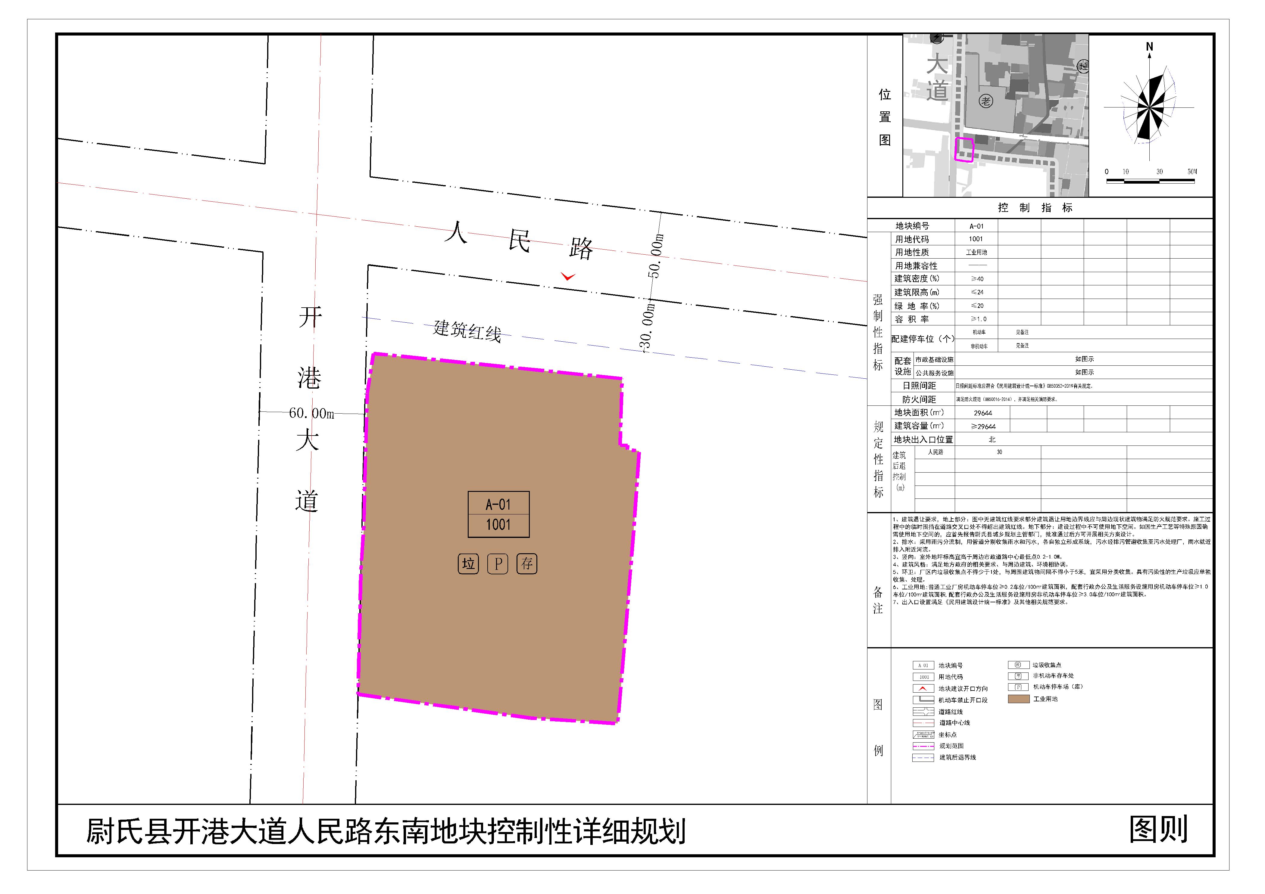 尉氏县开港大道人民路东南地块位于尉氏县人民路与开港大道交叉口东南,规划范围内用地性质为工业用地。详见附图“尉氏县开港大道人民路东南地块控制性详细规划(图则)”。